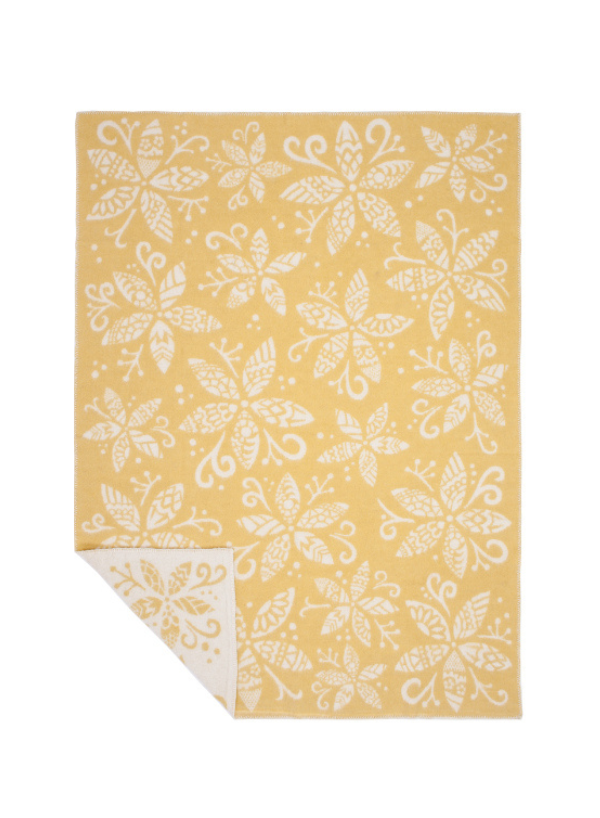 Named Blóm, the Icelandic word for “flower,” this blanket captures the fleeting beauty of Iceland’s summer flowers in a stunning yellow tone.